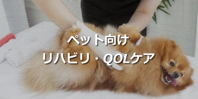 高齢犬や術後ペットのために、歩行や筋肉運動の補助、適度な散歩サポート、ストレッチ、関節ケア、マッサージ、リラックスケアを提供します。